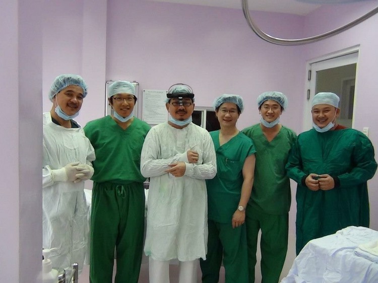 Dr Phan Minh Hoàng (thứ 2 từ trái sang) sau một ca phẫu thuật