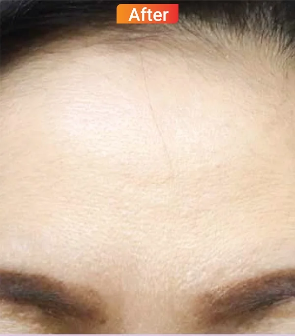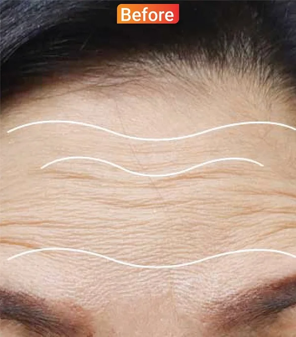 Có tác dụng làm mịn da và giảm sự hình thành các nếp nhăn. Các vùng như trán, vùng quanh mắt (vết chân chim) và cằm thường xuyên có nếp nhăn do sự co cơ, và Botox có thể làm thư giãn các cơ này, giúp da trông căng mịn hơn.