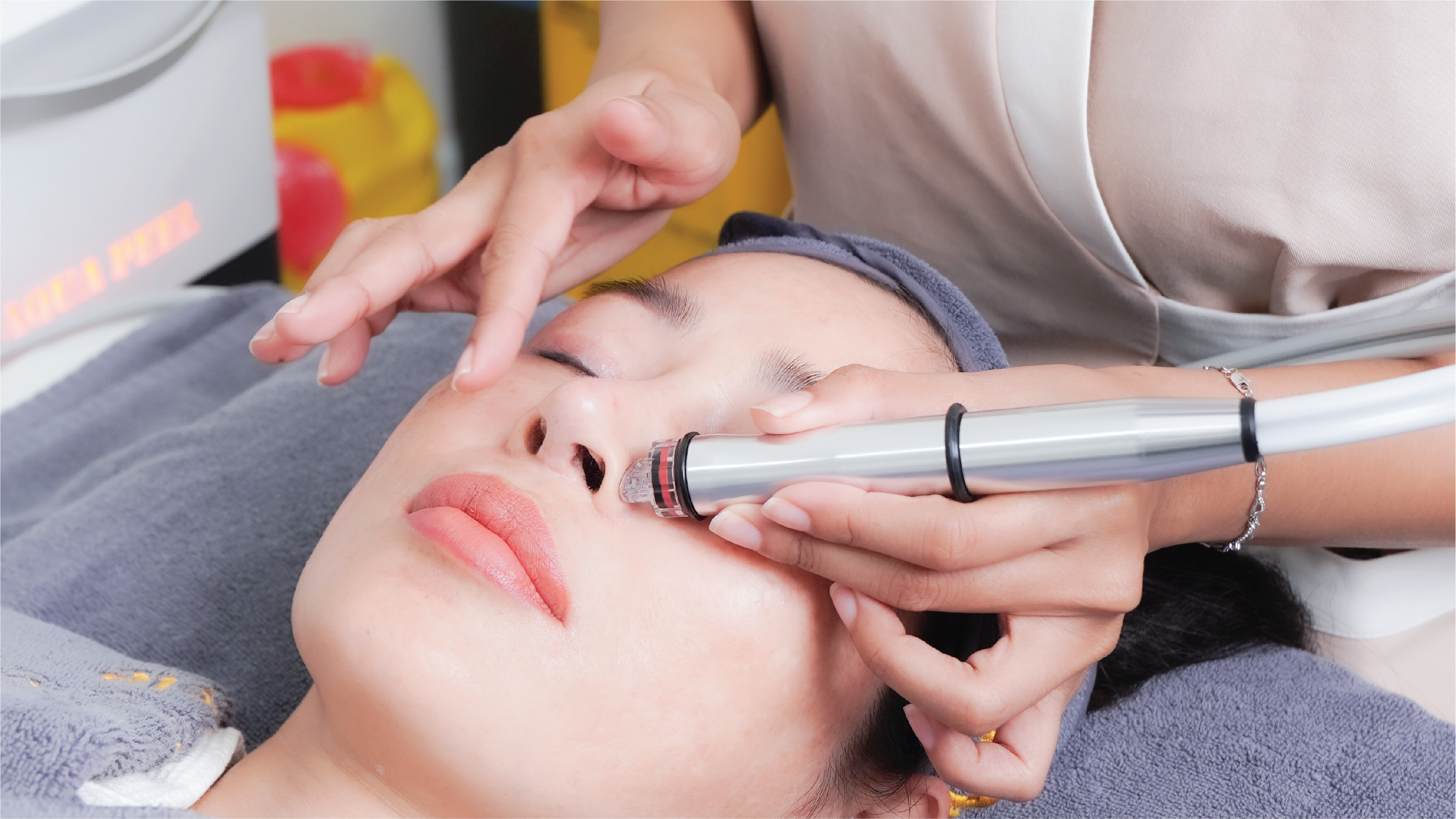 Soi da và thăm khám với bác sĩ chuyên khoa da liễu, đồng thời lên phác đồ điều trị cá nhân dựa trên tình trạng da của khách hàng