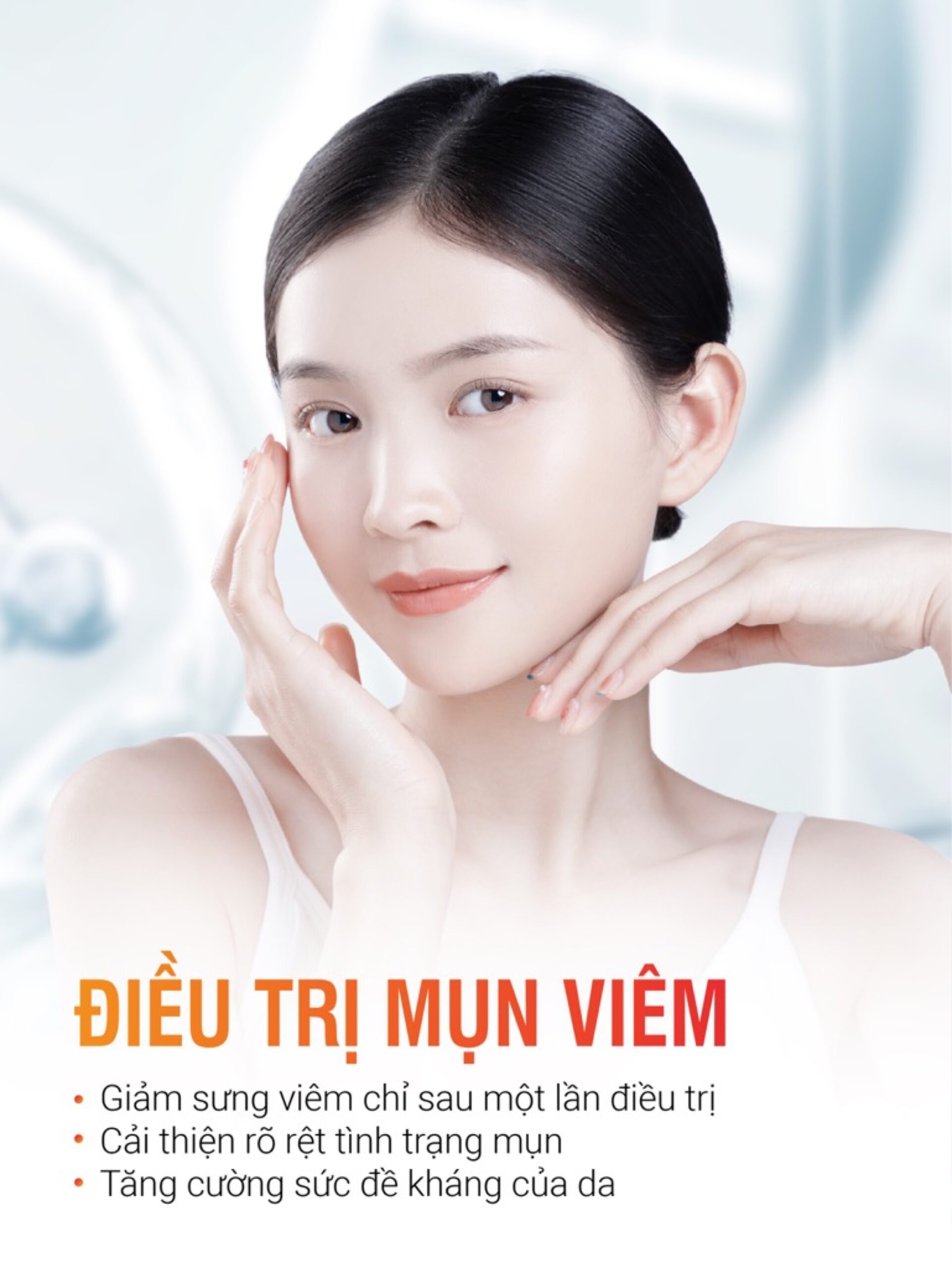 – Da sạch mụn, giảm sưng viêm: Cải thiện rõ rệt tình trạng mụn, giảm sưng viêm chỉ sau một lần điều trị.