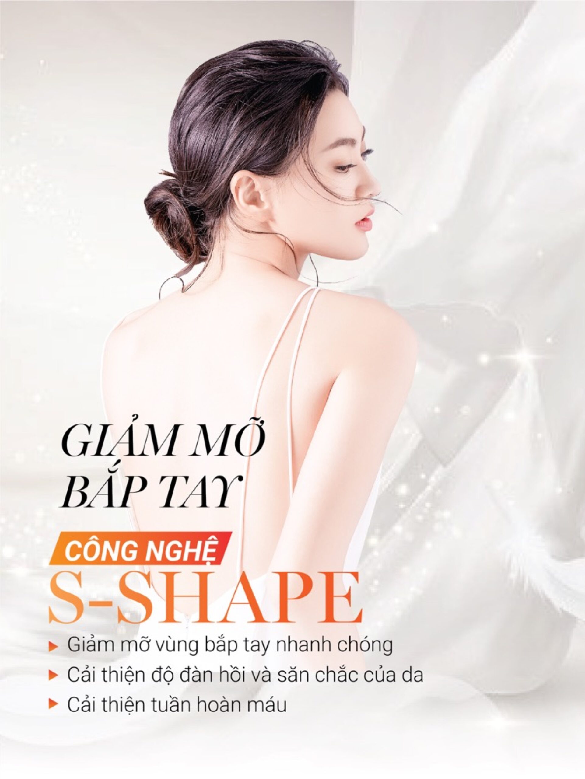 – S-Shape là phương pháp giảm mỡ, săn cơ trẻ hóa da được nhiều chị em tin tưởng sử dụng để giảm mỡ bắp tay hiện nay. Dựa trên nền tảng nguồn năng lượng RF đơn cực, với nhiệt lượng đồng nhất, giúp tác động đến mô mỡ nằm ở độ sâu 2.5cm. Từ đó giúp tác động làm giảm mỡ thừa, đồng thời kích thích tăng sinh collagen giúp săn chắc da, tái tạo đường nét cơ thể. Ngoài ra, S-Shape còn giúp tăng tuần hoàn máu, từ đó giúp làm giảm số đo vùng bắp tay một cách nhanh chóng và an toàn, không hề gây tổn thương lên bề mặt da.