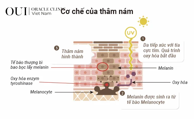 Nam tàn nhang hình thành do các hắc tố melanin tập trung nhiều bất thường ở bề mặt da. Melanin đóng vai trò là một chất bảo vệ da trước các tác động của tia UV, tuy nhiên khi cơ thể sản sinh quá nhiều melanin thì chúng sẽ thích tụ lại thành các đốm và gây nên nám tàn nhang rất kém thẩm mỹ.