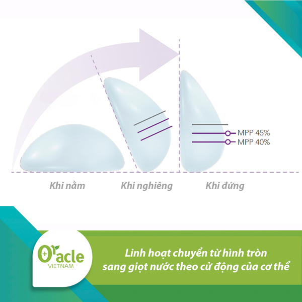 >> Khả năng chuyển đổi hình dáng từ tròn sang giọt nước theo cử động của cơ thể, tránh cảm giác căng cứng, tạo độ nhô lý tưởng, giúp bạn luôn thoải mái và xinh đẹp ở mọi tư thế.
