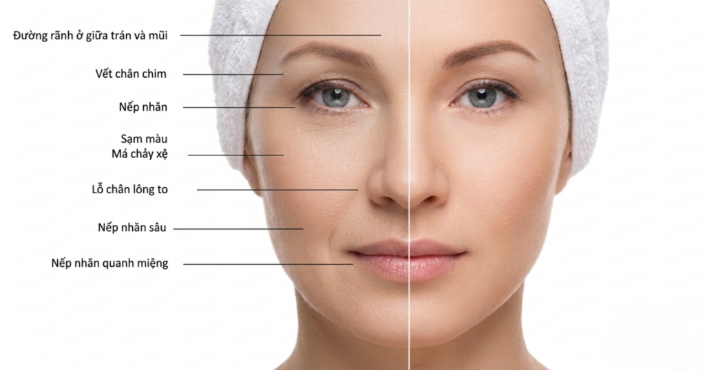 - Lão hóa da khiến gương mặt trông mệt mỏi, thiếu sức sống và già hơn tuổi thật.